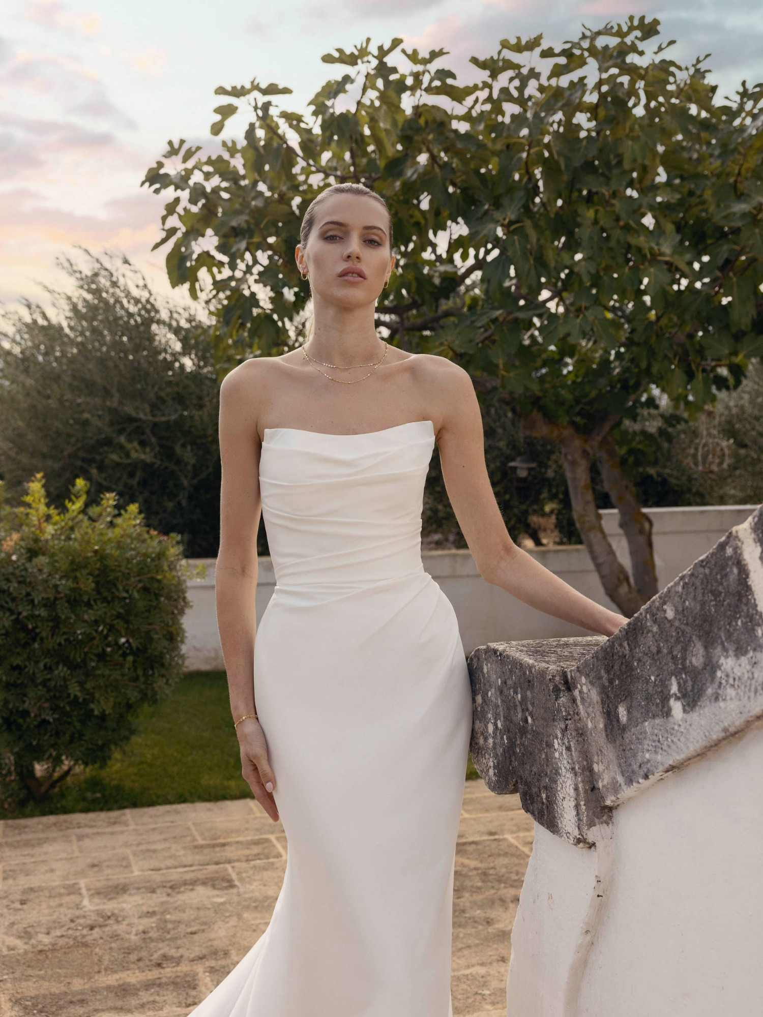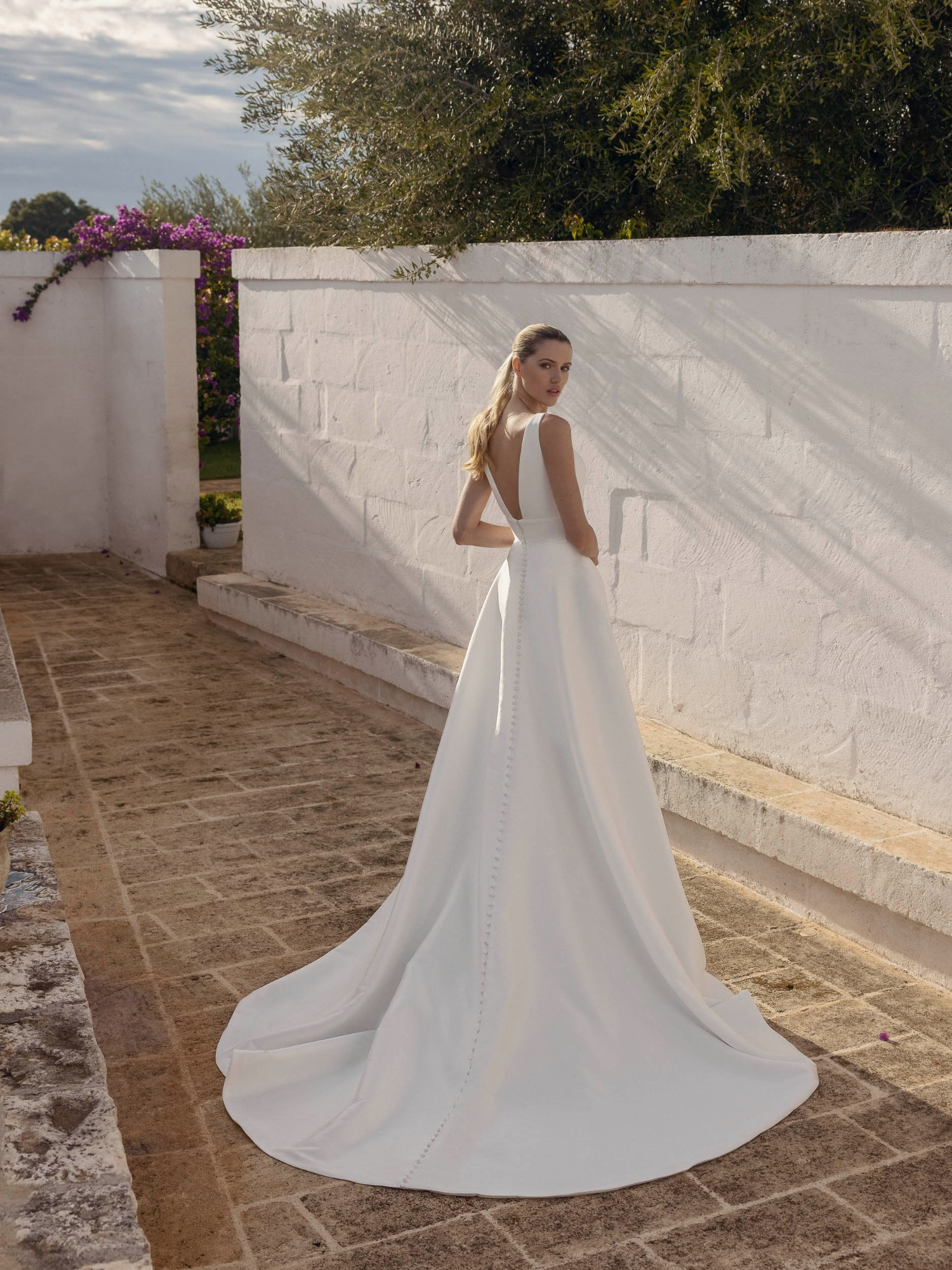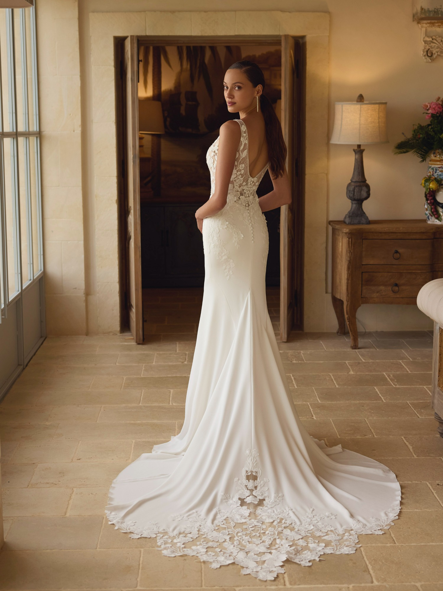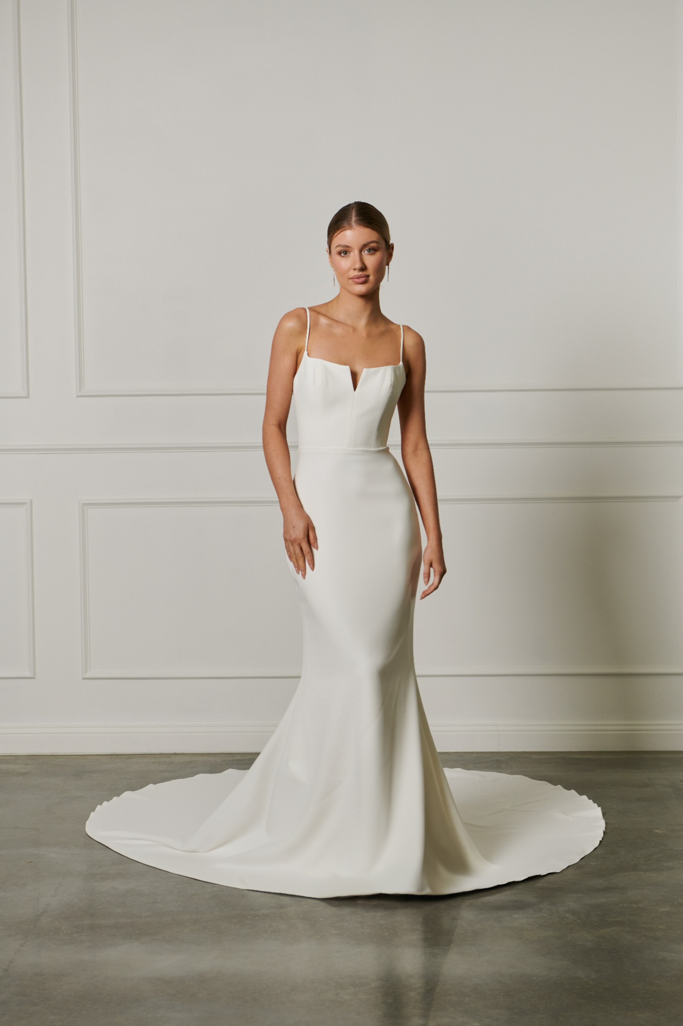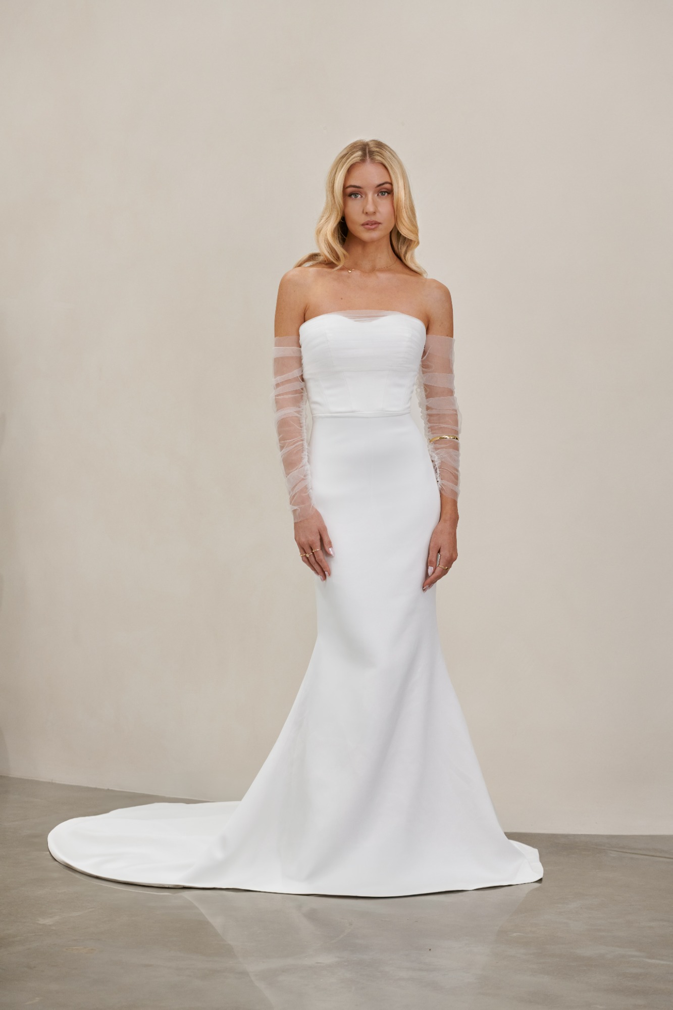 Modeca kombiniert moderne Silhouetten mit eleganten, femininen Details. Die Designs wirken zeitgemäß und hochwertig, ideal für Bräute, die klare Formen und raffinierte Akzente lieben.