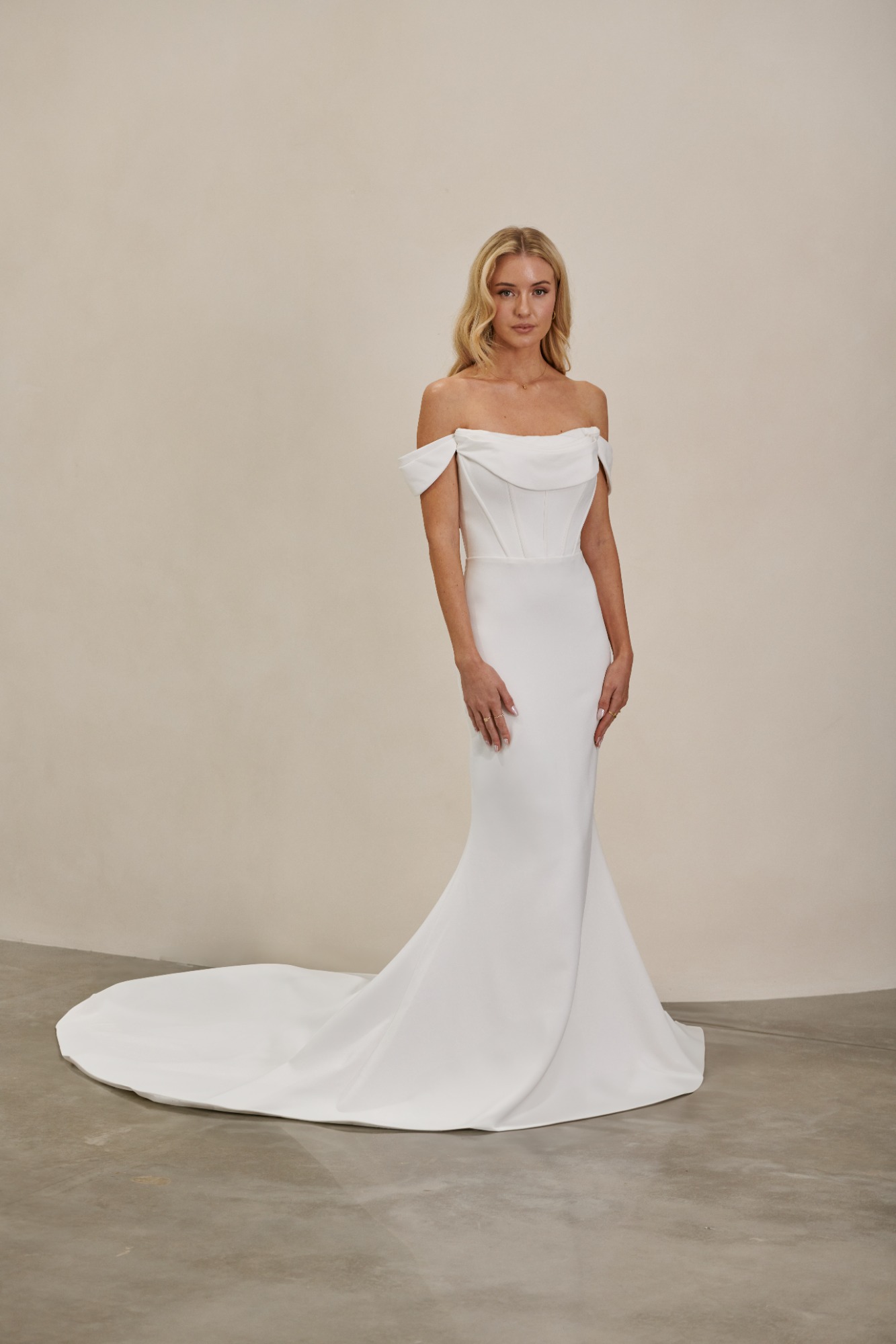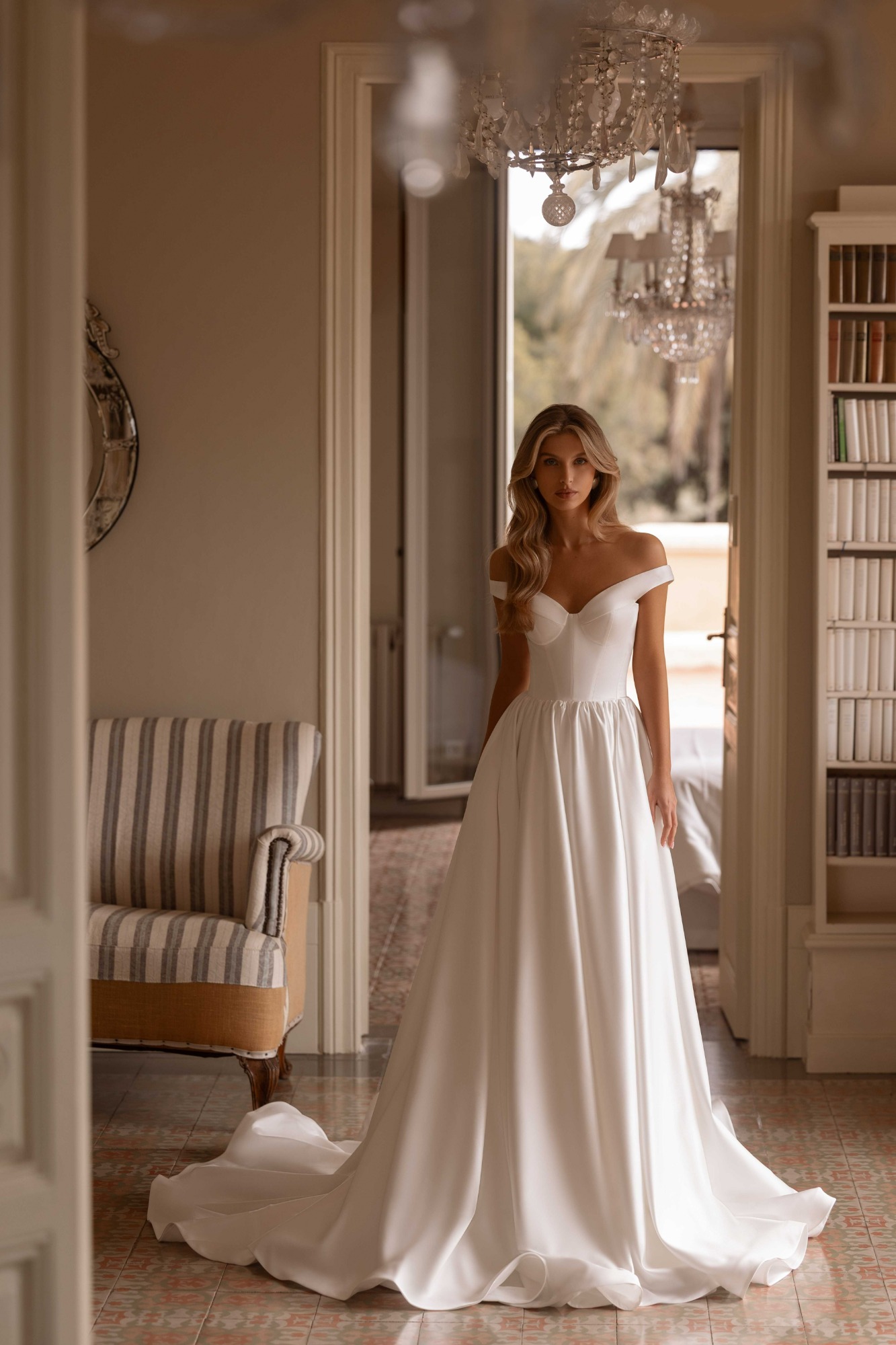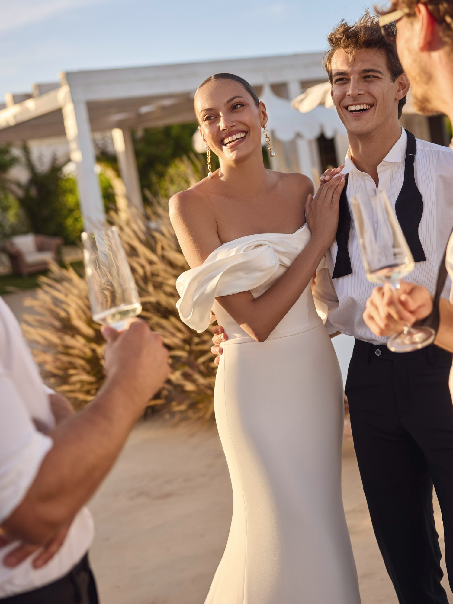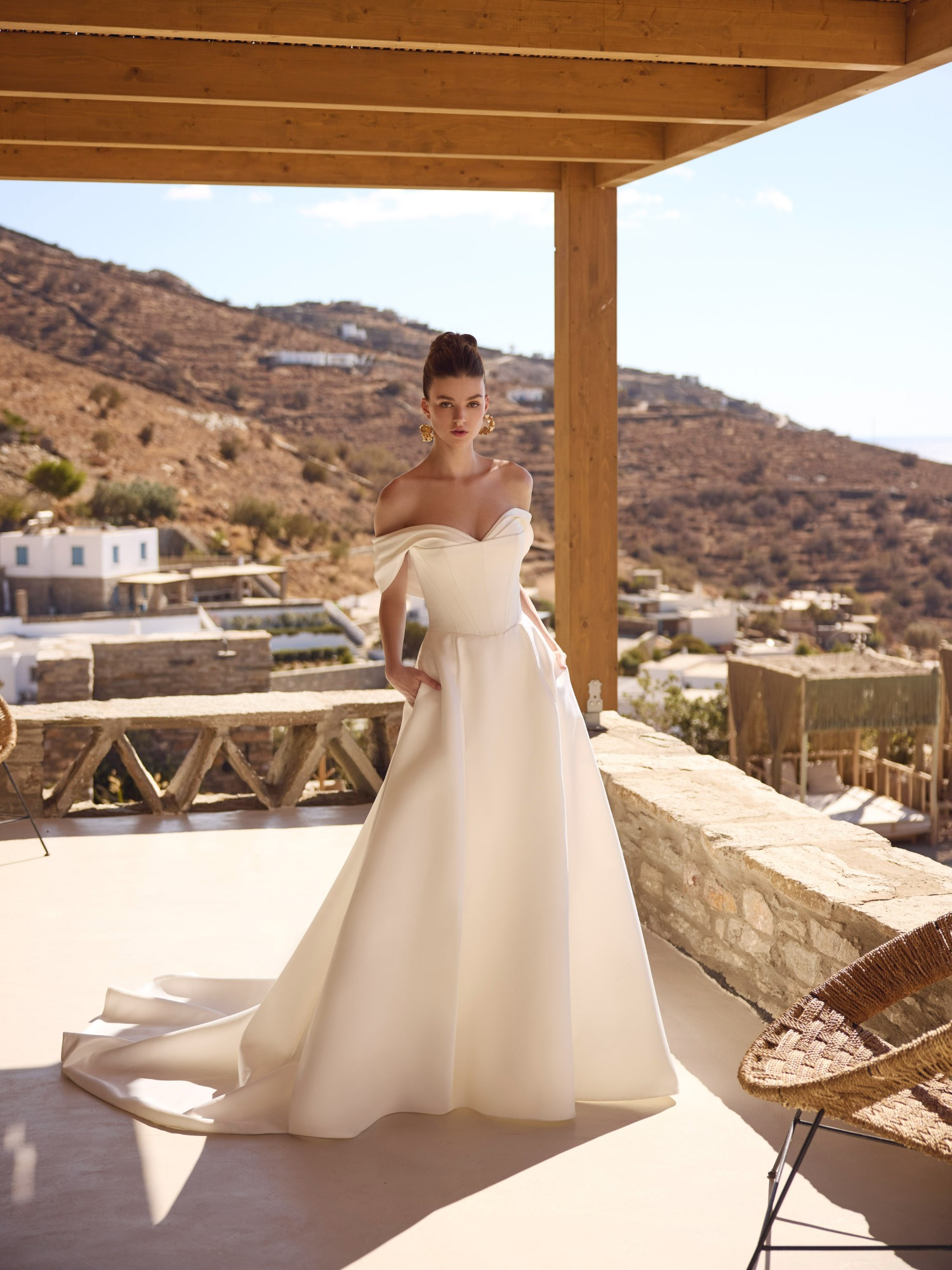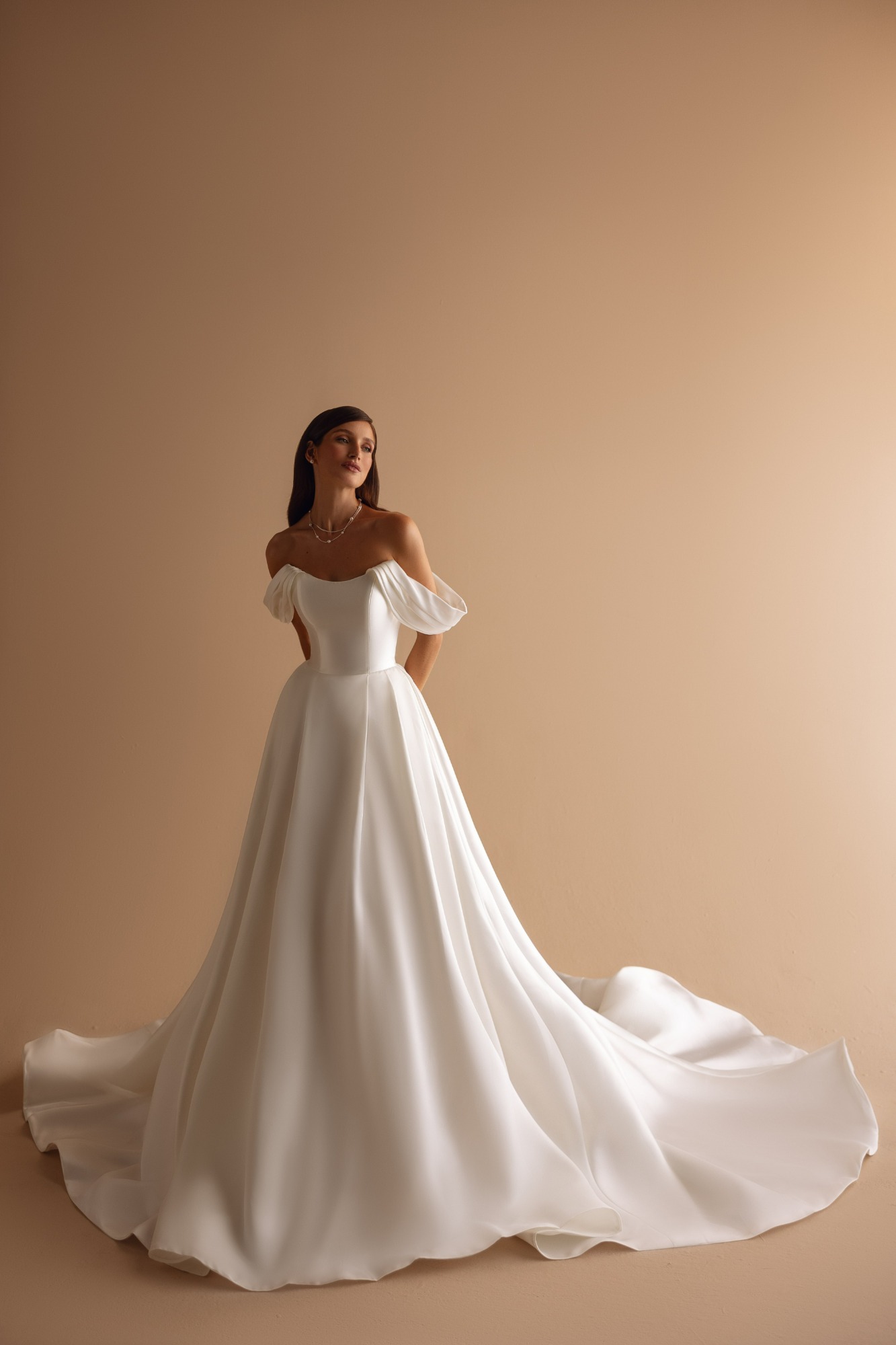 Modeca kombiniert moderne Silhouetten mit eleganten, femininen Details. Die Designs wirken zeitgemäß und hochwertig, ideal für Bräute, die klare Formen und raffinierte Akzente lieben.
