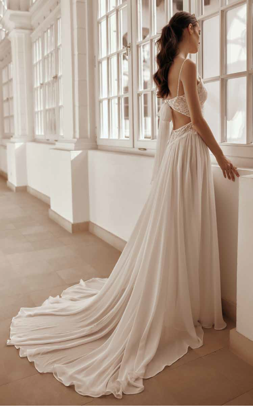 Mia Lavi steht für frische, verspielte Brautmode mit eleganten Spitzenverzierungen und vielseitigen Looks – für Bräute, die auffallend schön und zugleich lebendig heiraten möchten.